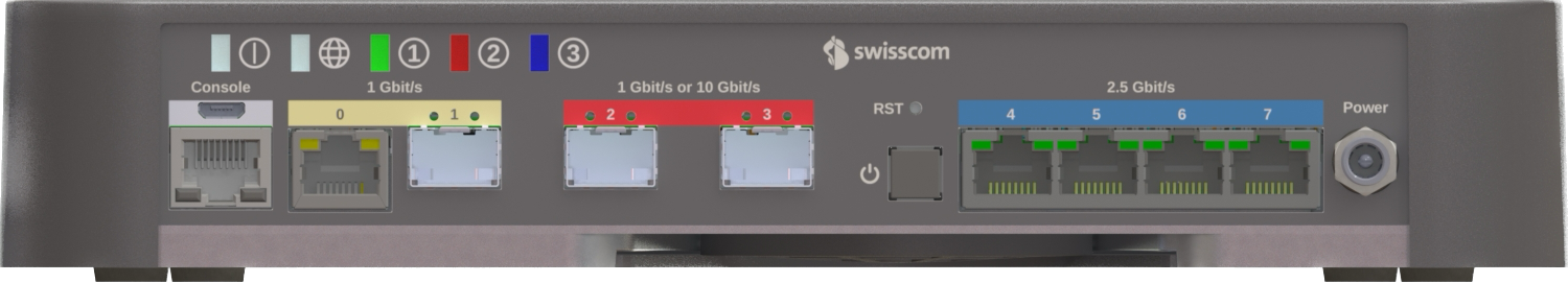 | 2 | GE2 | SFP | WAN Interface for DSL, FTTH or FTTO connectivity |
